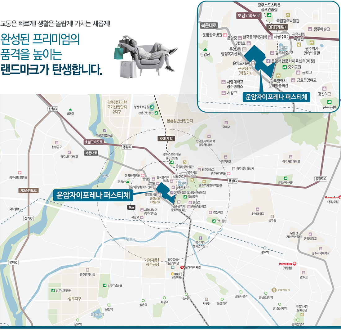 광주 운암자이포레나 퍼스티체 입지조건 생활 인프라