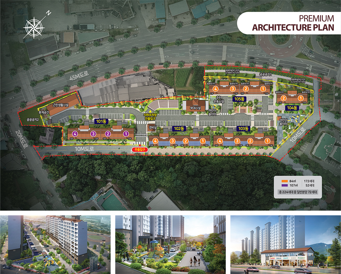 단지의 규모는 지하 1층, 지상 11~15층, 5개동, 전용면적 84~107㎡, 총 224세대이며 이중 일반분양은 72세대로 이뤄집니다.