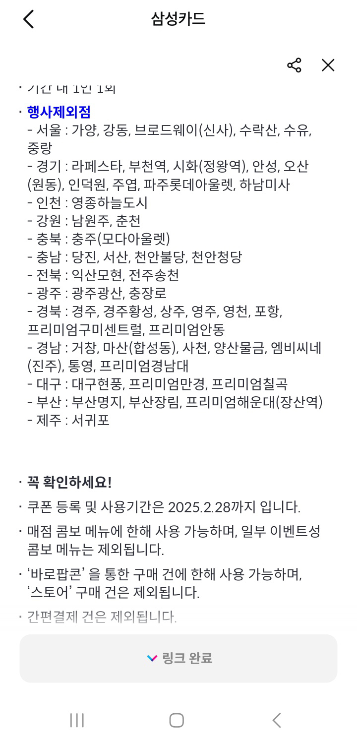 일단 삼성카드 혜택에서 링크 해두시고 쿠폰번호 받아두세요!