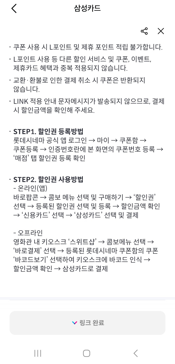 롯데시네마 영화 팝콘 할인 쿠폰 (삼성카드 할인방법)