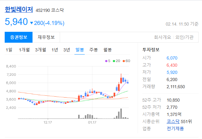 삼성전자 관련주 유리기판 관련주: 한빛레이저 452190