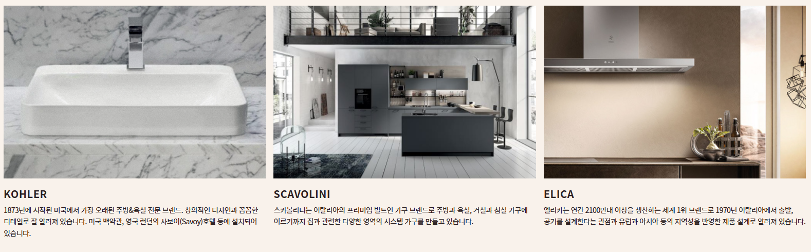 각 타입별로 독립존을 만들어서 프라이빗하면서도 디자인적인 요소도 강화해 굉장히 트렌디하답니다. 당연히 환기나 채광이 잘 되는 것은 물론이고, 타입 별로 내부에 독일 명품 브랜드인 불탑 주방가구 또는 50년 전통 이탈리안 가구 브랜드인 스카볼리니 주방가구가 설치된답니다.