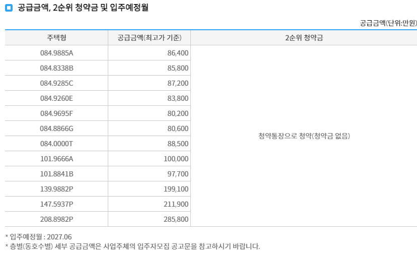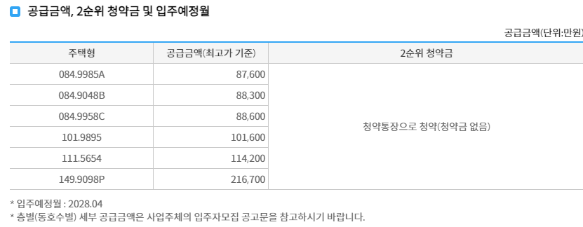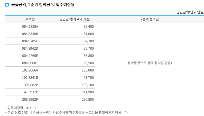 분양가는 3.3㎡당 2422만원으로 책정되었습니다. 전용 84㎡ 분양가는 8억 중반대, 101㎡ 분양가는 9억원대입니다.