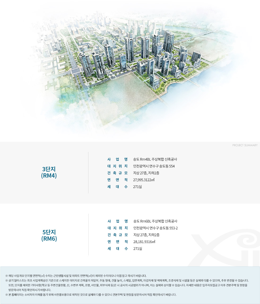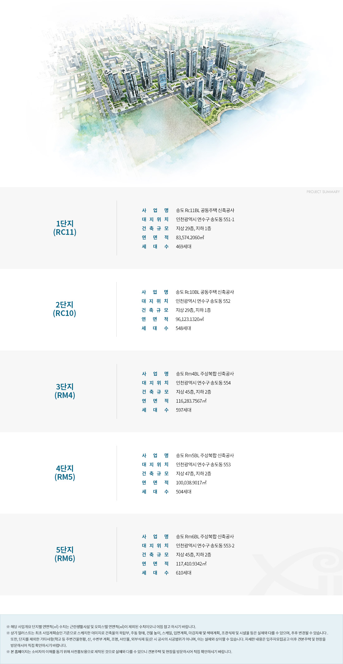 Rc10, Rc11블록에는 지하 1층~지상 29층 규모의 아파트가 조성될 계획이며, Rm4, Rm5, Rm6블록에는 지하 2층~지상 최고 47층의 주상복합이 계획돼 있습니다. 전용면적은 84~208㎡ 아파트 2,728가구와 전용면적 39㎡ 오피스텔 542실이 들어서게 됩니다.