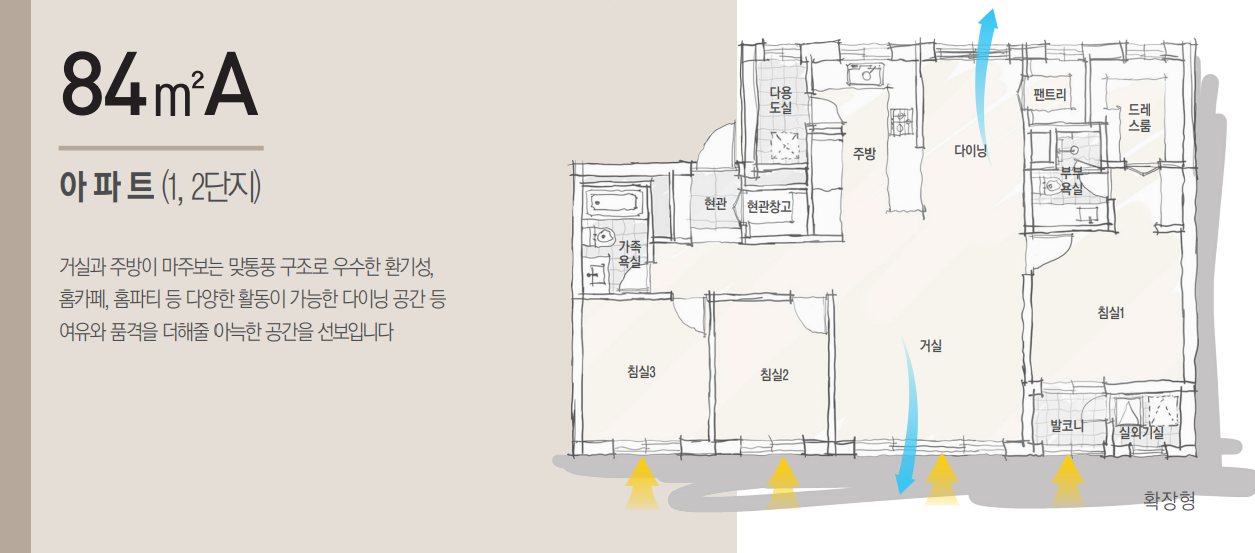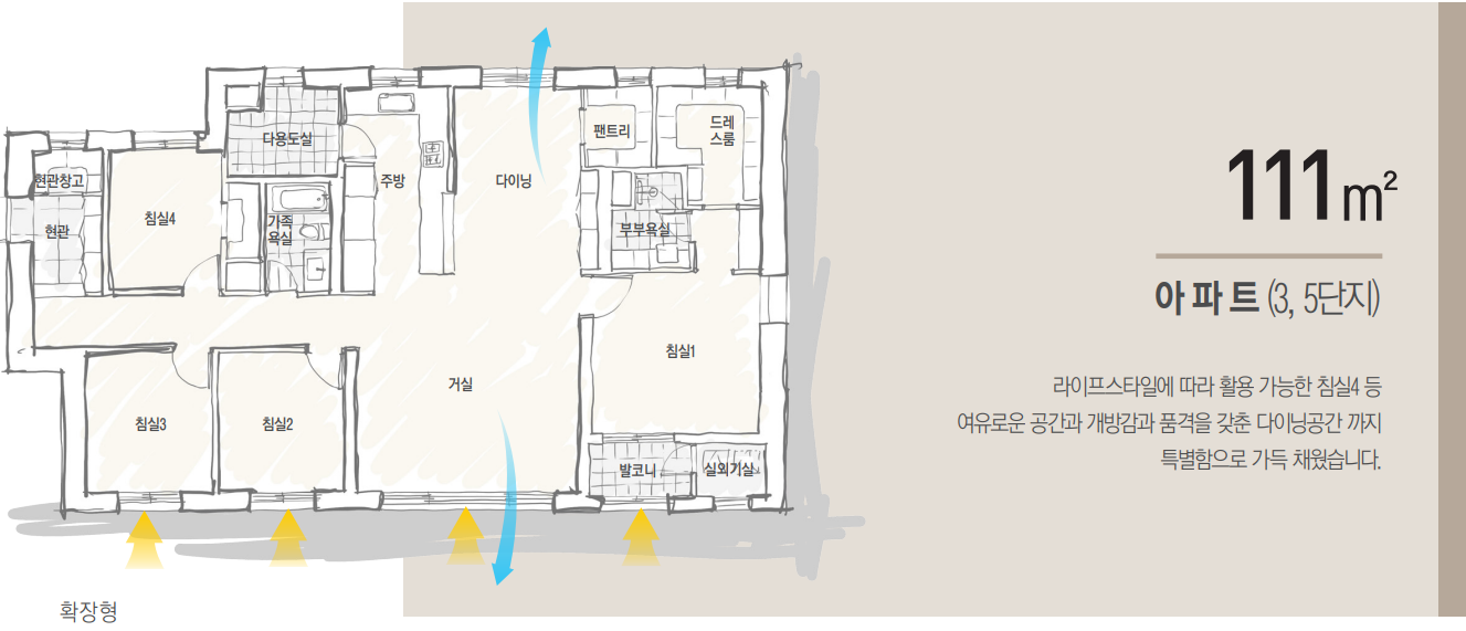 아파트 모두 주택시장에서 선호도 높은 전용 84㎡ 이상의 중대형으로 이루어지며, 테라스하우스, 펜트하우스, 스카이브릿지 등 고급 아파트에 걸맞은 특화설계, 커뮤니티, 특화조경 등을 대거 적용할 예정입니다.