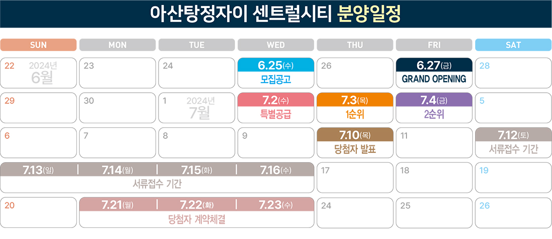 청약 일정은 한국부동산원 청약홈에서 7월 2일(수) 특별공급을 시작으로 3일(목) 1순위, 4일(금) 2순위 접수를 받습니다.