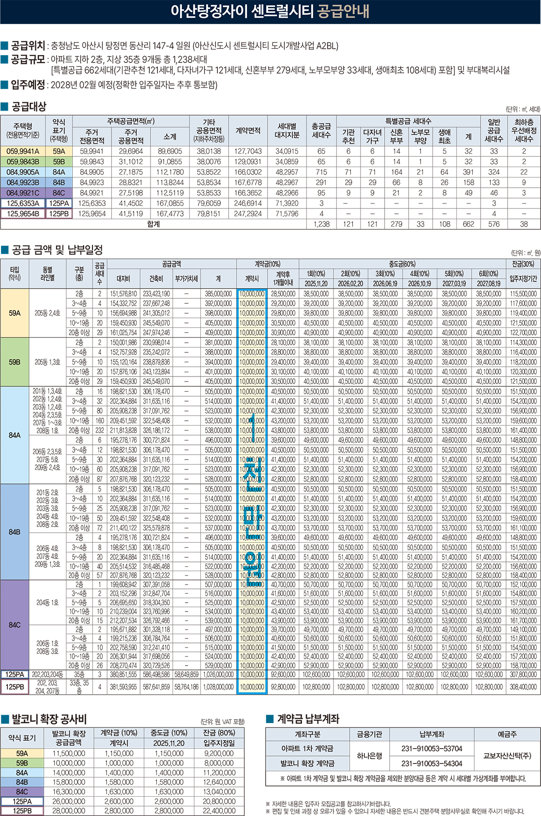 아산탕정자이 센트럴시티 분양가 공고문 분양가
