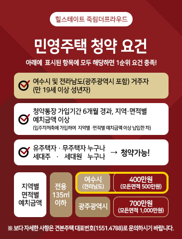 여수 힐스테이트 죽림더프라우드 청약조건