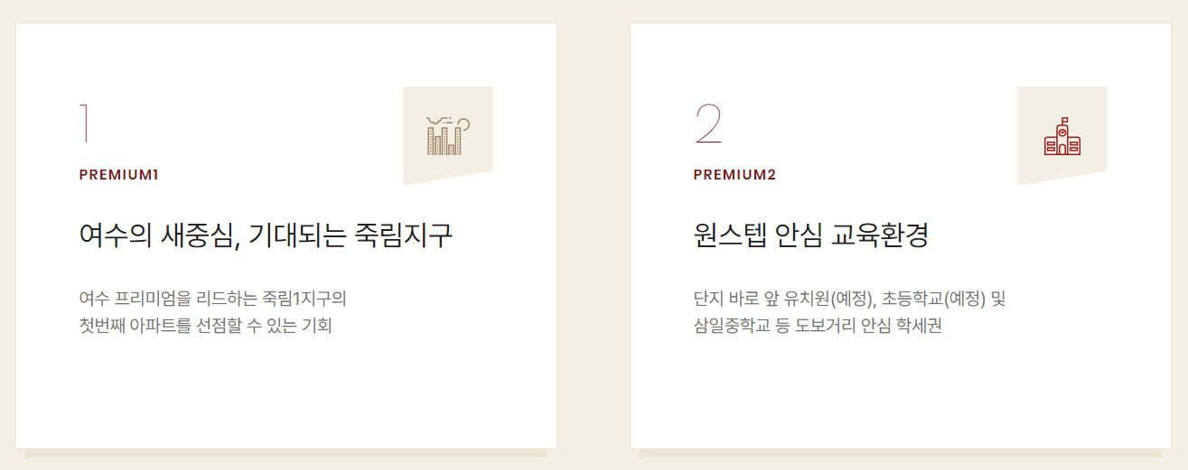 단지 바로 앞에 유치원(예정), 초등학교(예정)가 예정되어 있으며, 도보거리에 삼일중학교 등이 위치한 안심 학세권 입지를 자랑합니다. 전남 아파트 분양 단지를 눈여겨보셨던 학부모님들이라면 힐스테이트 죽림더프라우드 분양 단지의 우수한 교육환경에 반하지 않을 수 없겠네요^^