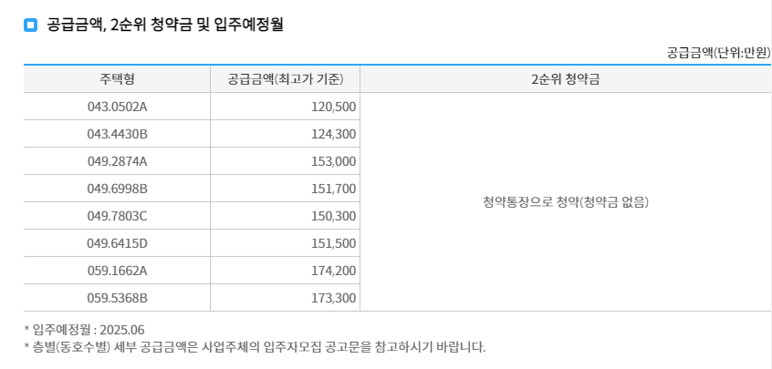 공급타입은 43A, 43B, 49A, 49B, 49C, 49D, 59A, 59B 이며, 각각 공급세대수는 위의 표를 참고하세요.