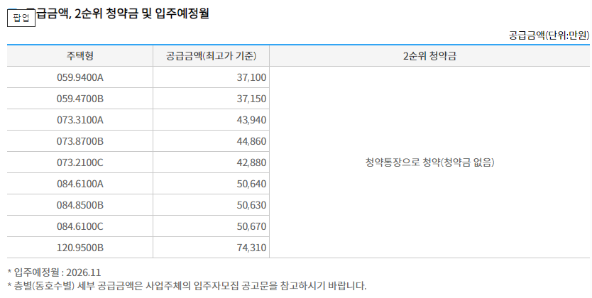 84타입은 5억 630~670만원 , 120타입은 7억 4천 310만원이라고 나와있네요.