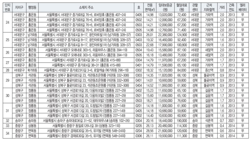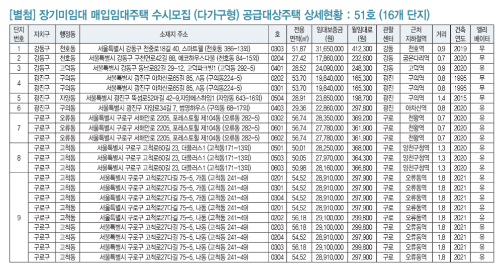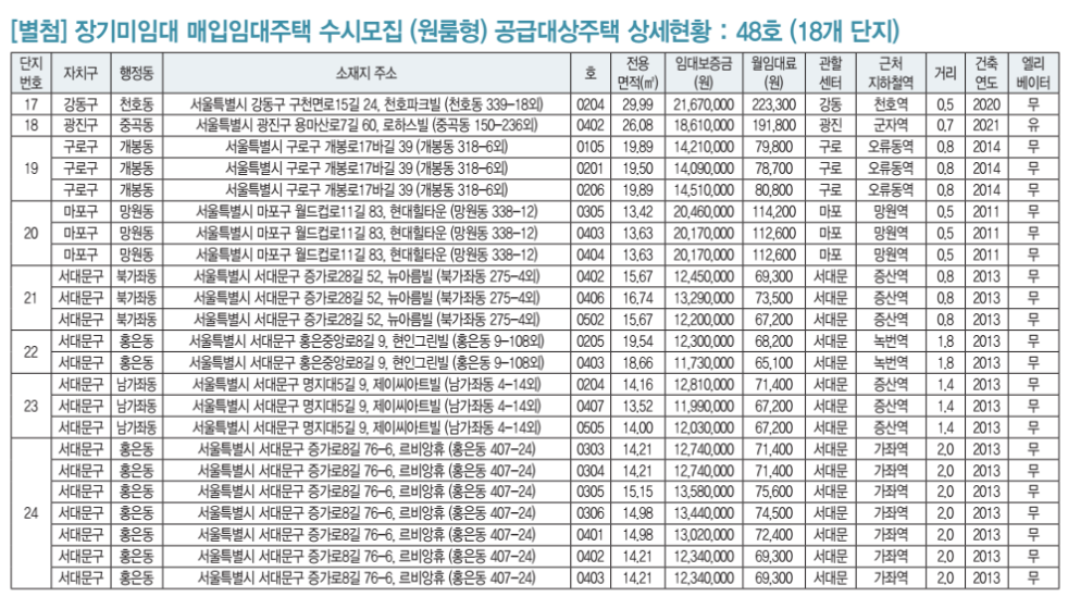 2024년 장기미임대 매입임대주택 공급대상 주택목록