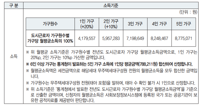 ※ 동일 순위 경합 시 추첨에 의하여 순위를 결정하며, 소득기준은 공고문(11쪽)을 확인하여 주시기 바랍니다.